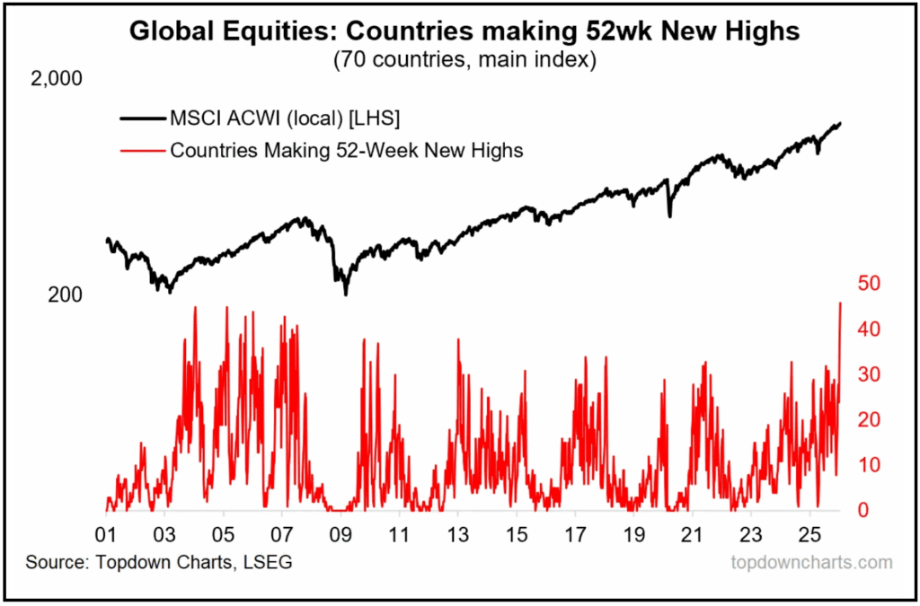We’re now seeing the most number of countries making new 52-week highs in their main stock market indexes.