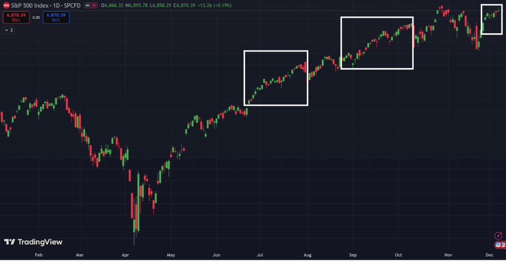 In the past few months alone, we’ve had two long streaks of a calm uptrend.