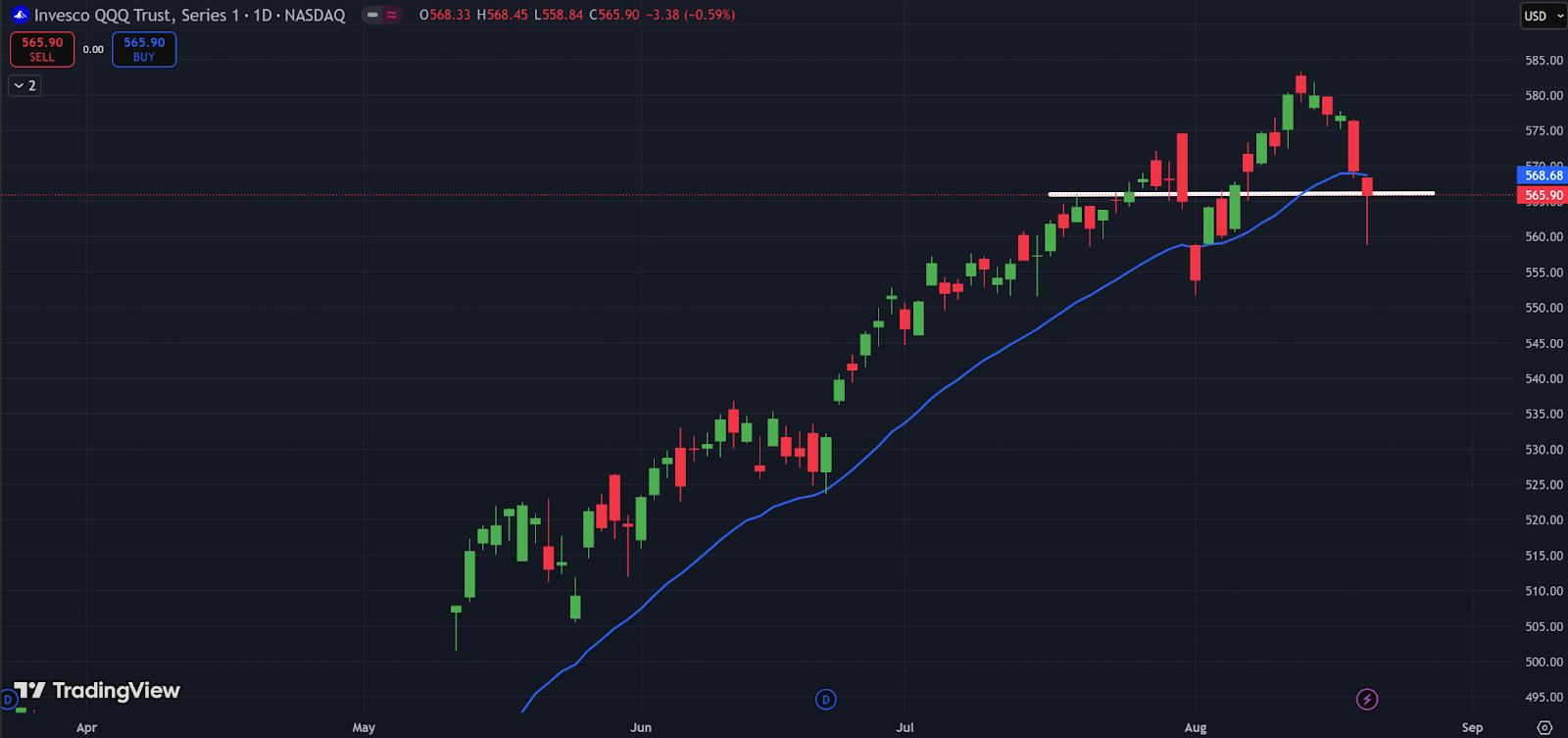 The Nasdaq 100 – the 100 largest stocks on the Nasdaq – is now back down to levels last seen in late July.