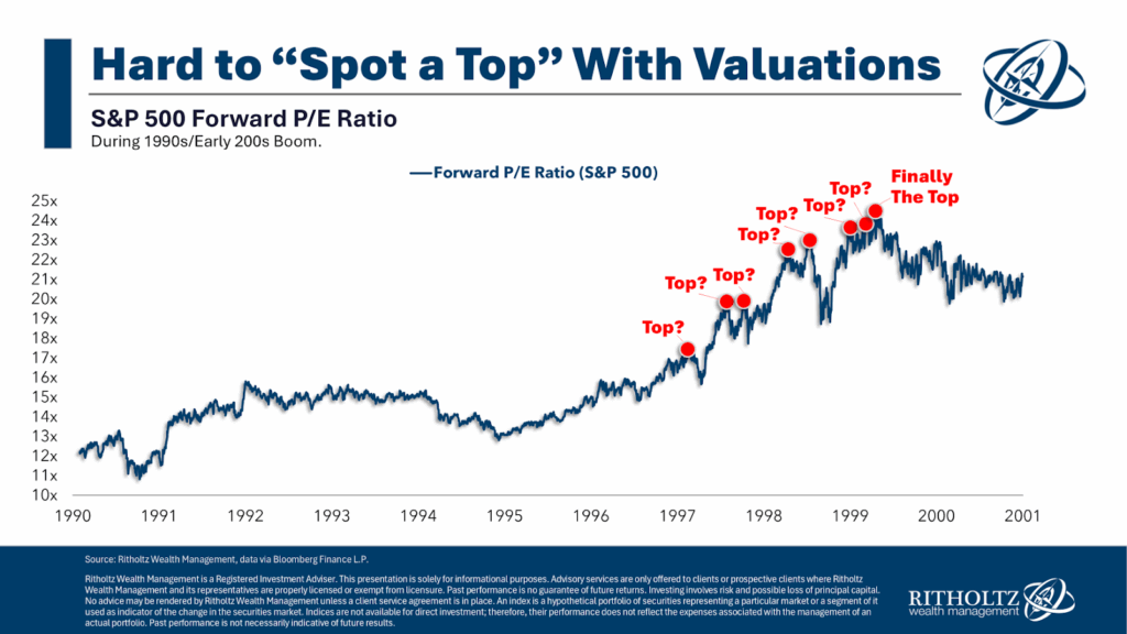 Just look at how hard it would have been to spot the top based on valuations in the Dot-Com era.