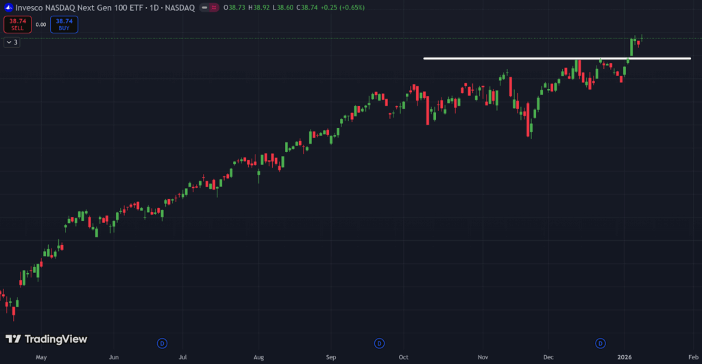 It’s the Nasdaq Next Gen 100 – essentially an index comprising the 101st to 200th largest stocks on the Nasdaq.