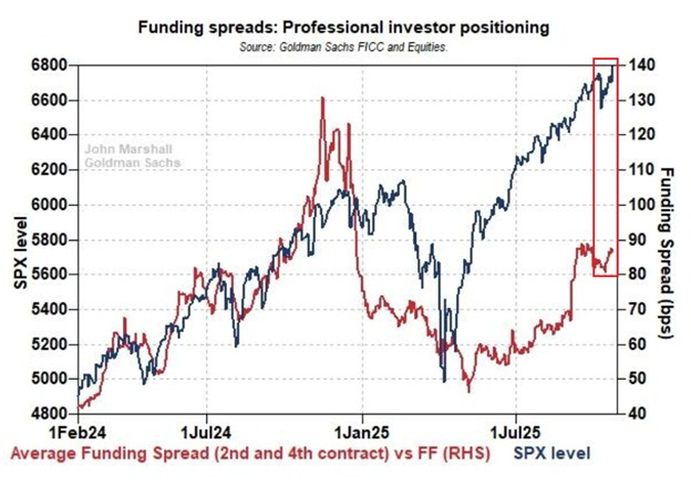 Right now, funding spreads are near the highest levels since December 2024.
