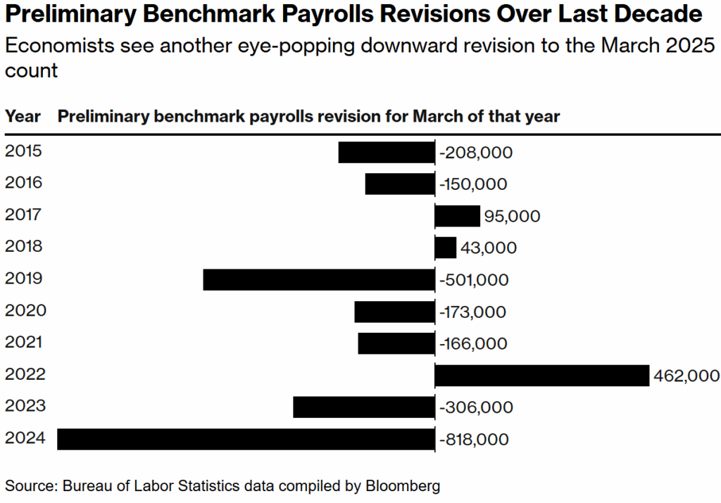Later this morning, we’re going to get the Bureau of Labor Statistics (BLS) revised numbers for the number of jobs created from March 2024 – March 2025.