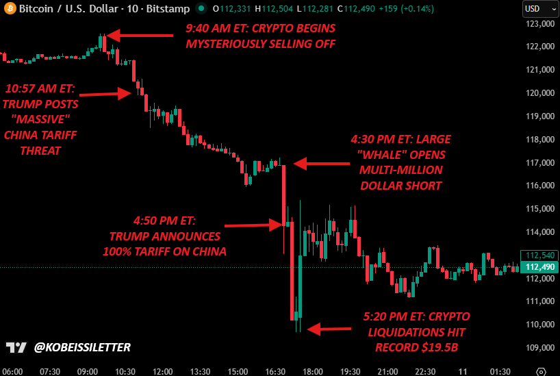 And just 20 minutes before Trump’s post on the additional 100% tariffs, a large “whale” opened a multiple-million dollar short.