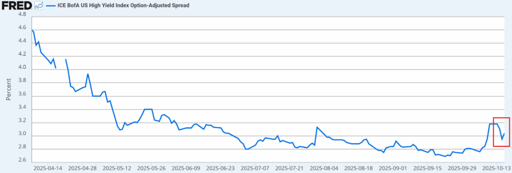 High-yield bond spreads – aka the premium that financial institutions are demanding to lend to NON-investment grade corporates – also pulled back over the week.
