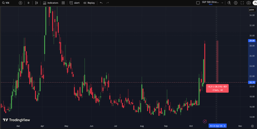 This was the biggest intraday drop in the VIX since the market lows right after Liberation Day (where it dropped 45%).