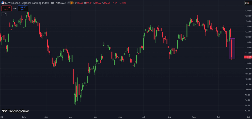 This is the KRX – the Nasdaq Regional Banking Index – dropping 6.3% yesterday.